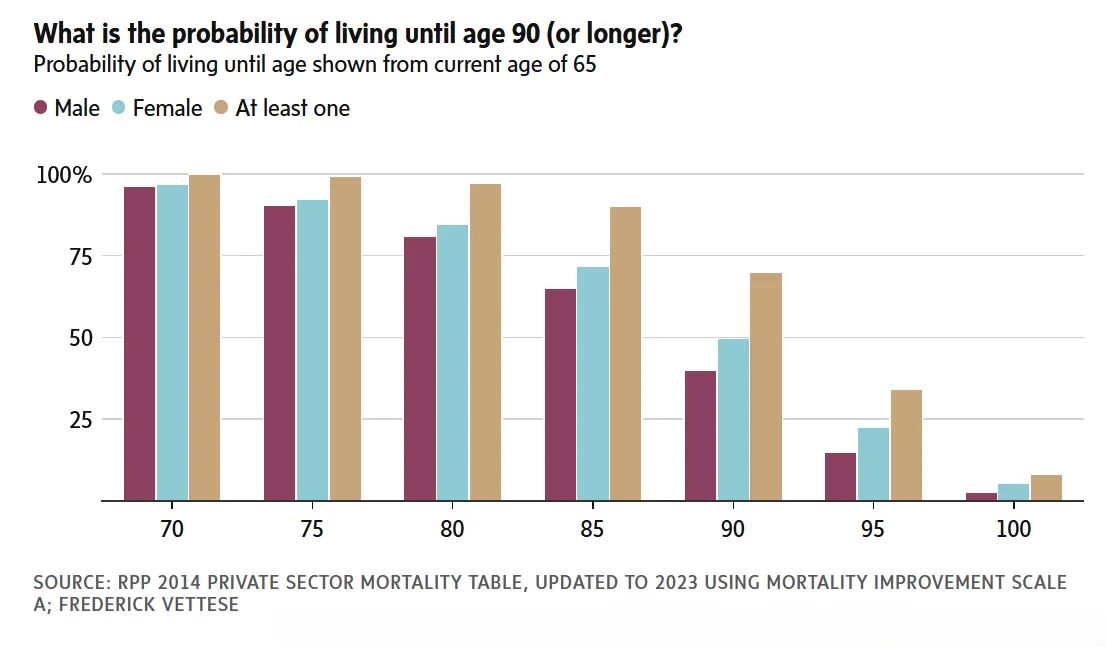 From “What is your probability of living past 90? The answer could change your retirement planning” by Frederick Vettese in The Globe and Mail.